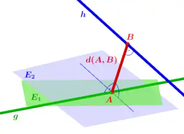 Das Gemeinlot ist die Strecke, deren Endpunkte jeweils auf einer der beiden windschiefen Geraden liegen und die senkrecht zu beiden Geraden verläuft. Ihre Länge kennzeichnet den kürzesten Abstand dieser beiden Geraden.[1]
