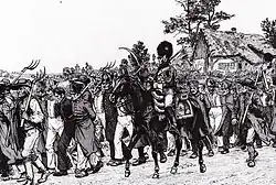 Mit Hilfe der Bevölkerung, die diese umherziehenden Marodeure nicht gern sahen, da sie die Ernten und die Häuser plünderten, wurden Deserteure der französischen Armee eingefangen und bewacht.[2]