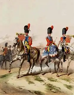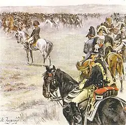 ![]() Gendarme d’élite vor dem Quartier von Général Napoléon. Gemälde von François Flameng. | |