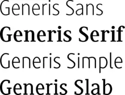 - Generis Sans, ohne Serifen (eine Grotesk-Variante)