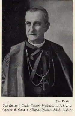 Gennaro Granito Pignatelli di Belmonte war 1948 der letzte lebende Kardinal, der noch von Papst Pius X. kreiert worden war und der älteste Kardinal der Welt. Er starb am 16. Februar 1948 im Vatikan und wurde in der Krypta der Kapuziner auf dem Friedhof Campo Verano in Rom beigesetzt.