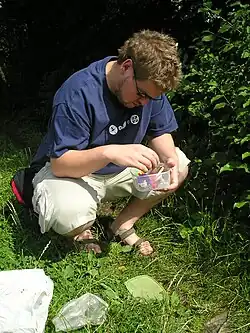 Ein Spieler kurz nach dem Fund eines Geocaches.