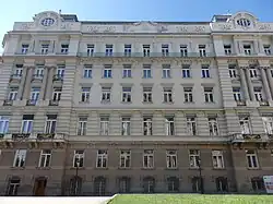 Der freistehende trapezförmige Baublock zwischen Biberstraße, Wiesingerstraße, Dominikanerbastei und Rosenbursenstraße, dessen Mittelrisalit der Hauptfassade zum Georg-Coch-Platz hin liegt, wurde 1904 bis 1906 von Otto Wagner errichtet und bildet einen letzten Höhepunkt der Stadterweiterung in der Ringstraßenzone. Das Gebäude gilt als eines der bedeutendsten Jugendstilbauten Wiens mit weitreichender Vorbildwirkung. Wagner gestaltete es betont sachlich und dem Nutzungszweck entsprechend in der damals noch neuen Stahlbetonweise. Ein zweiter Bauteil wurde 1910–1912 zur Dominikanerbastei hin angebaut.