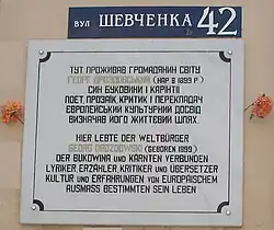 Gedenktafel zu Ehren von Georg Drozdowski in Czernowitz, wo er geboren wurde und lebte