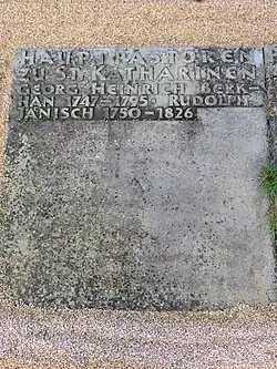 | Johann Melchior Goeze | Hauptpastor an St. Katharinen zu Hamburg 1786–1795 | Rudolf Jänisch |
