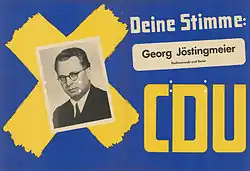 Bis 1933 war Jöstingmeier Mitglied der Zentrumspartei. Nach 1945 spielte er eine bedeutende Rolle bei der Gründung der CDU. Bereits während des Krieges hatte er mit Bischof von Galen über eine überkonfessionelle christliche Partei gesprochen. Am 2. September 1945 war er einer der Hauptredner auf dem Gründungsparteitag der westfälischen CDU in Bochum. In den folgenden Jahren hat Jöstinghaus wiederholt Konrad Adenauer in verschiedenen Fragen beraten. Er war Vorstandsmitglied der westfälischen CDU sowie Vorsitzender der Partei im Regierungsbezirk Münster. Auch war er Mitglied im Verfassungsausschuss der Arbeitsgemeinschaft von CDU und CSU.