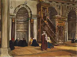 - Gläubige beim Gebet in einer Kairoer Moschee, Gouache