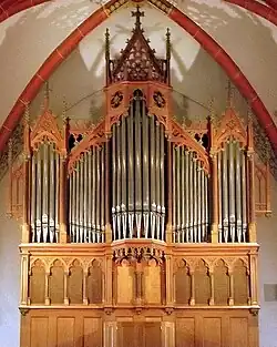 II/P | Gehäuse der Stahlhuth-Orgel beim Neubau der Orgel 1991 wieder verwendet[2] | |