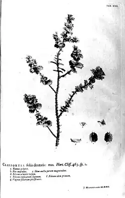 Nach dem Gartenkatalog Viridarium Cliffortianum (1737)[2] erschien das vollständige Verzeichnis der Sammlungen von George Clifford 1738 unter dem Titel Hortus Cliffortianus.[3]