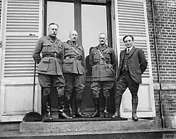 Kurz zuvor wurde George Henry Fowke am 22. Februar 1916 der zeitlich befristete Dienstgrad eines Generalleutnants (Temporary Lieutenant-General) verliehen, woraufhin er von dem zum Adjutant-General to the Forces ernannten Generalmajor Sir Nevil Macready den Posten als General-Adjutant der BEF übernahm.[22] Sein eigener Nachfolger als Engineer-in-Chief of the Royal Engineers der BEF wurde am 5. März 1916 Generalmajor Spring R. Rice.[23] Für seine Verdienste wurde er am 3. Juni 1916 als Knight Commander des Order of the Bath (KCB) nobilitiert, wodurch er fortan den Namenszusatz „Sir“ führte.[24][25] Er wurde am 1. Mai 1917 auch Kommandeur der französischen Ehrenlegion[26] sowie am 1. Januar 1918 auch Knight Commander des Order of St Michael and St George (KCMG).[27][25] Darüber hinaus wurde ihm mit Wirkung zum 11. März 1918 das französische Croix de guerre verliehen.[28]