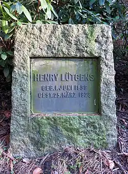 Henry Lütgens wurde auf dem Hamburger Friedhof Ohlsdorf im Bereich der Familiengrabstätte Johann Friedrich Lütgens im Planquadrat P 25 nördlich vom Wasserturm beigesetzt.