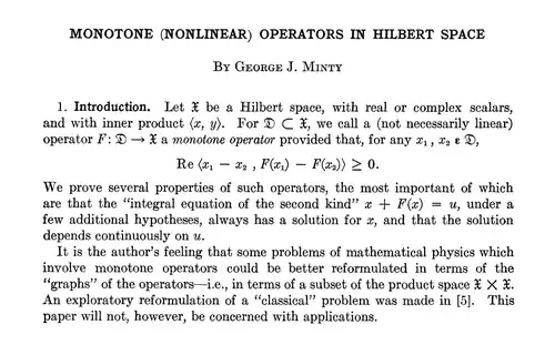 - Monotone (nonlinear) operators in Hilbert space, Duke Math. J. 29, 341–346, 1962