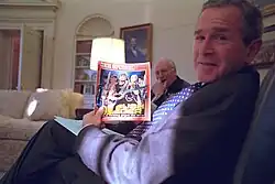 Nach dem Präsidentschaftsübergang wurde Bush am 20. Januar 2001 vereidigt. Er war nach John Quincy Adams der zweite US-Präsident, dessen Vater ebenfalls US-Präsident gewesen war, und der erste Präsident mit einem MBA-Abschluss. Mit Bush zogen viele Republikaner wieder ins Weiße Haus ein, die schon unter seinem Vater wichtige Ämter innehatten, darunter Dick Cheney (damals Verteidigungsminister) als Vizepräsident. Außenminister wurde der frühere Golfkriegsgeneral Colin Powell, Donald Rumsfeld – der bereits von 1975 bis 1977 als solcher amtiert hatte – Verteidigungsminister. Die wichtigsten Berater waren Karl Rove und Sicherheitsberaterin Condoleezza Rice. Viele der neuen Mitarbeiter der Regierung George W. Bush hatten vorher der neokonservativen Denkfabrik Project for the New American Century angehört, etwa Richard Perle, Richard Armitage, Paul Wolfowitz und Lewis Libby.[12]