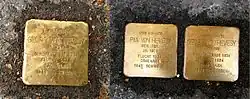 Stolpersteine von Hevesys in Freiburg im Breisgau, links: neben den chemischen Instituten in der Albertstraße, rechts: von Pia und Georg vor ihrem ehemaligen Wohnsitz in der Rosastr. 21