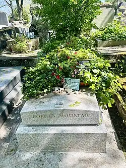 Georges Moustaki starb am 23. Mai 2013 in Nizza[3] an einer Lungenkrankheit, an der er seit mehreren Jahren gelitten hatte.[4] Wegen seiner Krankheit hatte er sich 2009 von der Bühne zurückgezogen,[5] nachdem er sein letztes Konzert in Barcelona hatte abbrechen müssen.[6] Sein Grab befindet sich auf dem Pariser Friedhof Père-Lachaise (Division 95).[7]