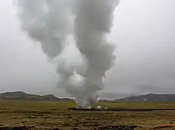 Das Kraftwerk von Nesjavellir befindet sich im Südwesten der Insel, in der Nähe des Þingvallavatn und ist das größte Geothermalkraftwerk Islands. Es produziert derzeit 120 MW elektrische Leistung[3] und etwa 1800 Liter/Sekunde heißes Wasser (300 MW).
