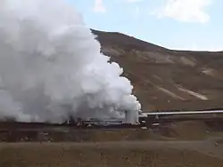 Zur Versorgung mit elektrischer Energie gibt es sieben größere und zwei kleine geothermale Kraftwerke in Island.[3] Im Jahr 2020 deckten sie 25,72 % (2008: 24,5 %) des isländischen Bedarfs an Elektroenergie.[3] Außerdem liefert die geothermale Energie Wärme für Heizung und Warmwasser für circa 90 % aller isländischen Haushalte.