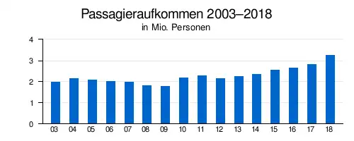 Verkehrszahlen des Gerald R. Ford International Airport 2003–2018[1]