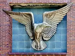 - Wandskulptur Flügelschlagende Möwe, Zinkguss, Marinelazarett an der Großen Parower Straße, Stralsund, 1938[10]