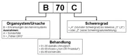 Die letzte Stelle des DRG-Codes bezeichnet den (ökonomischen) Schweregrad der DRG. Buchstabe A kennzeichnet eine aufwändige (teure) Behandlung. Nach unten sind je nach Basis-DRG verschiedene Differenzierungen, derzeit bis zum Buchstaben I, möglich. Der Buchstabe Z kennzeichnet DRGs, die nicht weiter differenziert sind.