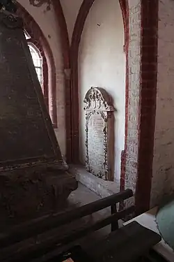 Das Epitaph für die Kinder steht im nördlichen Seitenschiff in einer Nische der Nordwand östlich neben dem Nordportal.im Dom St. Nicolai on Stendal.[4]
