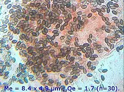 Die glatten, elliptischen Sporen sind 7–10 µm lang und 4–5 µm breit und besitzen einen deutlichen, zentral liegenden Keimporus. Die Hutdeckschicht ist hymeniform aufgebaut und weist teilweise inkrustierte Zellen auf. Dazwischen befinden sich bis zu 200 µm lange, schmal zylindrische Pileozystiden sowie hyphenähnliche oder kettenartige Stränge.
