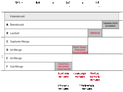 - Abweichung von der eingestellten Geschwindigkeit aufgrund kleinerer Stopps (d. h. Ausfallzeiten, die unter einem Schwellenwert liegen und daher nicht in die Verfügbarkeit eingehen)