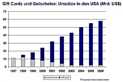 Während in Deutschland der Markt für Papiergutscheine seit Jahren stagniert, konnte die Geschenkkarte seit ihrer Einführung auf dem US-amerikanischen Markt stark ansteigende Umsatzzahlen verbuchen. Ein Jahr nach ihrer Einführung wurden 1998 knapp drei Milliarden US-Dollar Umsatz mit dem Verkauf von Geschenkkarten erzielt. 2003 stieg der Umsatz auf knapp 40 Milliarden US-Dollar.