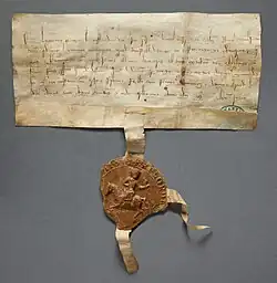 Die Siedlung wuchs, wurde zu einem kleinen Hafen, und am 27. Oktober 1275 wurde Amsterdam von Graf Florens V. von Holland erstmals urkundlich erwähnt, noch als Amestelledamme.[2][3] Hintergrund war die Verleihung eines Zollprivilegs.[4] Die Hauptwirtschaftszweige waren damals das Brauen von Bier und der Fischfang. Um 1300 bekam die Stadt, die auch schon eine Festung errichtet hatte, von dem damaligen Landesherrn das Stadtrecht verliehen und der Handel blühte auf. Wesentlich trug hierzu das im Jahr 1323 verliehene Zollrecht für Hamburger Bier bei.[4]