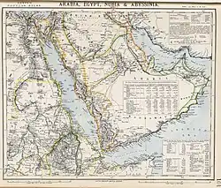 Da das Gebiet des heutigen Saudi-Arabien einerseits durch die Schifffahrtswege im Westen durch das Rote Meer und im Osten durch den Persischen Golf erschlossen wurde, andererseits auch von Karawanenstraßen durchzogen wurde und zudem im Westen, Norden und Osten von Hochkulturen umgeben war, setzen schriftliche Zeugnisse zu diesem Gebiet früh ein.[4] Dazu zählt auch das in der Bibel genannte Königreich Midian. Kleinstaaten der Sabäer, Nabatäer[5], Ghassaniden, Lachmiden und Kinda und Stadtstaaten wie Tayma[6] und Dedan[7] bilden sich heraus. Aus dieser Zeit stammen auch die ersten Inschriften in diesem Gebiet, in der Regel in Buchstabenschriften gehalten.[8] Moderne Wirtschaftsformen, etwa das Geldwesen, verbreiten sich und der Einfluss des Römischen Reichs erreicht die nördlichsten Teile des heutigen Saudi-Arabien.[9]
