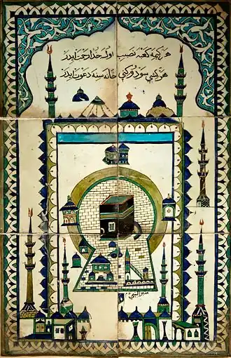 Darstellung der Moschee und der Kaaba in Mekka aus dem 18. Jahrhundert