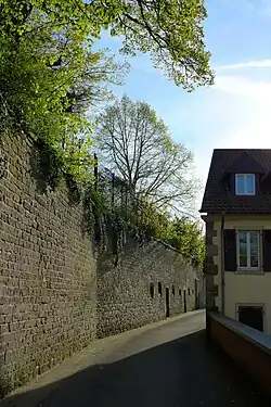 - ↑ Hartwig Beseler, Niels Gutschow: Kriegsschicksale deutscher Architektur, Verluste – Schäden – Wiederaufbau, Eine Dokumentation für das Gebiet der Bundesrepublik Deutschland, Bd. II: Süd, Wiesbaden 2000, S. 1083.