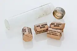 - ↑ Henri Leroux: Mémoire relatif à l'analyse de l'écorce de saule et à la découverte d'un principe immédiat propre à remplacer le sulfate de quinine. (Memoir concerning the analysis of willow bark and the discovery of a substance immediately likely to replace quinine sulfate). In: Journal de chimie médicale, de pharmacie et de toxicologie. Band 6, 1830, S. 340–342. (books.google.com)