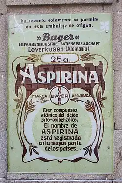 - ↑ Désirée Kietzmann: Markenrechte: Aspirin als Reparationszahlung. In: apotheke adhoc. EL PATO Medien, 28. Juni 2010, abgerufen am 3. September 2019.