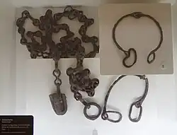Nach Timothy Taylor (2001)[4] sind aus dem eisenzeitlichen Europa ab ca. 800 v. Chr. fast 50 Sklavenketten bekannt, etwa aus Hay Hill, Lord’s Bridge, Cambridge[5]. In Deutschland sind dies Bad Nauheim (Wetteraukreis), Handschelle mit Scharnier, Manching (Lkr. Pfaffenhofen a. d. Ilm) und Römhild („Steinsburg“), in Österreich Au am Leithaberge und Hallein, in der Schweiz zum Beispiel Basel-Gasfabrik.[6] Im Moor von Llyn Cerrig Bach, Anglesey, in Wales deponierte vermutlich ein Sklavenhändler zwei eiserne Sklavenketten mit Halsringen als Weiheopfer. Die Ketten gehörten in verschiedene Kulturen der Kelten in der Hallstattzeit und der Latènezeit.