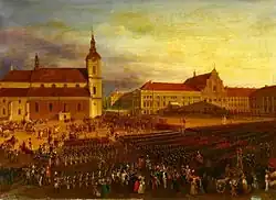 Rathaus im September 1835 während der „Großen Revue von Kalisch“
