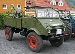 Ebenfalls 1948 wurde der von Albert Friedrich entworfene Unimog („Universal-Motor-Gerät“) auf einer DLG-Schau vorgestellt. Das Fahrzeug sollte vor allem in der Landwirtschaft und als Allrad-Allzweck-Zugmaschine eingesetzt werden. Noch auf der Ausstellung gab es 150 spontane Bestellungen. Später von den Boehringer-Werken und von Daimler-Benz fortgeführt, ist der Unimog bis heute auf dem Markt.[1]