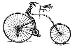 - 1879: Henry John Lawson entwickelte das Bicyclette, ein Fahrrad mit Kreuzrahmen und Kettenantrieb auf das Hinterrad. Die Räder waren unterschiedlich, das Vorderrad mit Parallelogramm-Lenkung größer.[55]