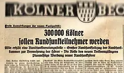 - ↑ a b Dominik Reinle: Hörfunk und Fernsehen in der Nazi-Zeit: „Ein Volk, ein Reich, ein Rundfunk“. WDR, 3. Juli 2005.