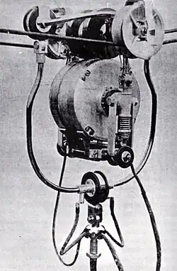 Der französische Ingenieur Louis Lombard-Gérin[8] stellte 1899 das System Lombard-Gérin vor.[9] Hierbei fuhr ein elektrisch angetriebener Stromabnehmerwagen synchron auf der Fahrleitung vor dem Wagen her, wodurch das zehn Meter lange Übertragungskabel – anders als bei den bisher bekannten Schleppkabeln – vom mechanischen Zug entlastet wurde. Der Kontaktwagen selbst war 18 Kilogramm schwer und wurde mit Drehstrom betrieben. Seine Antriebsenergie erhielt er dabei nicht direkt per Kontakt aus der Fahrleitung, sondern mittels elektromagnetischer Induktion von den Antriebsmotoren des Wagens. Dazu waren sechs bzw. sieben Leitungen im Verbindungskabel nötig. Der für den Kontaktwagen benötigte Drehstrom wurde aus dem Wechselstromkreis eines der Reihenschlussmotoren erzeugt und war somit von der Fahrgeschwindigkeit abhängig. Außerdem besaß das Wägelchen eine eigene Bremse, die über einen Kontakt am Fahrschalter betätigt wurde, dadurch war auch an Steigungen beziehungsweise Gefällstrecken ein synchroner Betrieb möglich. Der Abstand zwischen den beiden Fahrleitungsdrähten betrug beim System Lombard-Gérin 30 Zentimeter, die Oberleitung wurde an sieben Meter hohen Masten aufgehängt. Die beiden Drähte aus hartgezogenem Kupfer hatten einen Durchmesser von jeweils 8,25 Millimetern.[4][10][11]