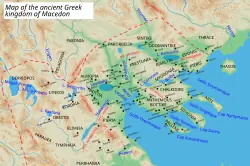 - Ende des 5. Jahrhunderts v. Chr. verlegte Archelaos die Hauptstadt des Königreichs von Aegae (heute Vergina) nach Pella. Er führte die Olympischen Spiele in Dion ein, ein neuntägiges Fest zu Ehren der neun Musen.