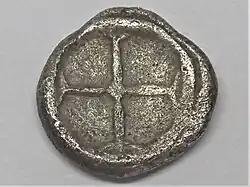 Ab 580 v. Chr. prägte die Stadt ihre eigenen Münzen. Im Umlauf waren z. B. Tetradrachmen, die einen Wagenlenker mit Viergespann, entsprechend dem Wert von vier Drachmen, und den Kopf der griechischen Nymphe Arethusa mit vier Delphinen abbildeten.[6] Häufiger wurden kleinere, weniger aufwändige Münzen geprägt, so der Obolus, der 1/6 einer Drachme galt und sein Halbstück, der Hemiobol. Arethusa verwandelte sich einst der Sage nach in die Süßwasserquelle, die auf Ortygia entspringt. Um 575 v. Chr. wurde der Apollontempel, der älteste bekannte griechische Tempel auf Sizilien, errichtet.