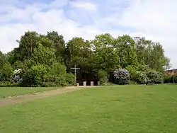 Im Außenbereich, südöstlich vom Hügel des Germanengrabs, wurden die Überreste eines jungsteinzeitlichen, erweiterten Dolmens (Großsteingrab von Warringholz) aufgebaut.