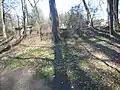Dort knickt der Weg Richtung Ende Heinestraße ab und führt weiter an einem Denkmal („Kreuz im Heldenhain“) für die Toten des Ersten Weltkriegs vorbei bis zum Neugrabenweg (bis hierher: weitere 300 m). Von dort führt der Birkenweg weiter am Siedlungsrand nach Westen.