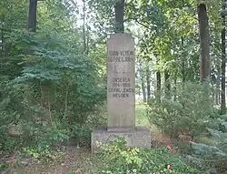 (2.) Turnerdenkmal | Geschwister-Scholl-Weg, „Ehrenhain“ | Das erste Turnerdenkmal wurde am Original-Standort durch eine Granitstele ersetzt. Beide sind Denkmale für die im Ersten Weltkrieg gefallenen Turner des Vereins |