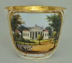 Der eingeschossige klassizistische Putzbau wurde 1843/44 durch Friedrich Wilhelm Wolff errichtet. Zuvor befand sich an dieser Stelle das Schützenhaus der Pfälzer Kolonie. Das Gesellschaftshaus bestand aus einem fünfachsigen Mittelbau, der auf beiden Seiten von kleineren dreiachsigen Flügelbauten flankiert wurde. Der Mittelteil verfügte über Arkaden, hinter denen sich große Rundbogenfenster befanden. Bekrönt war dieser Gebäudeteil von einem Dreiecksgiebel. Vor den drei mittleren Achsen führte eine Freitreppe zum Gebäude. Im Inneren des Hauses befand sich ein großer Saal, zu dem man durch Foyers gelangte.