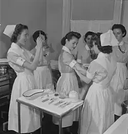 - ↑ Erste Verordnung über die berufsmäßige Ausübung der Krankenpflege und die Errichtung von Krankenpflegeschulen vom 28. September 1938, Reichsgesetzblatt Teil I S 1310.