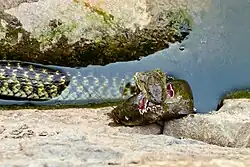 - ↑ a b c d Kamal Devkota, Ayush Maharjan & Hinrich Kaiser: You can’t always get what you want: attempted predation and prey handling of fish by the Checkered Keelback, Fowlea piscator (Schneider, 1799) in Nepal (Serpentes: Natricidae). In: Herpetology Notes. Band 13, 2020, S. 1073–1077 (englisch, biotaxa.org).