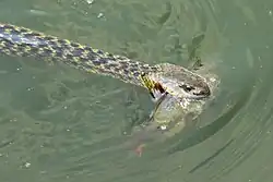 - ↑ a b c M. L. Hossain: Food habits of checkered keelback, Xenochrophis piscator (Schneider, 1799), in Bangladesh. In: Bangladesh Journal of Zoology. Band 44, Nr. 1, November 2016, S. 153, doi:10.3329/bjz.v44i1.30185 (englisch).