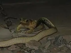 Die Weibchen legen zwischen Dezember und März bis zu 90 Eier. Als Ort für die Gelege werden von Nagetieren gegrabene Löcher gewählt oder andere Hohlräume in Felsen, Brunnen, Dämmen und ähnlichem. Die Jungtiere schlüpfen nach 60 bis 70 Tagen.[5]